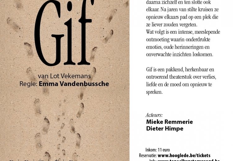 In regie van Dieter Himpe spelen Peter vercaemer, Annelies Dereyne, Sandra Haelewijn, André Thijs, Nele De Lie, Filiep Delannoy en Bernard Vanhuyse. 22, 26 en 29 novembei 2025 om 20 uur en 23 november om 18 uur.